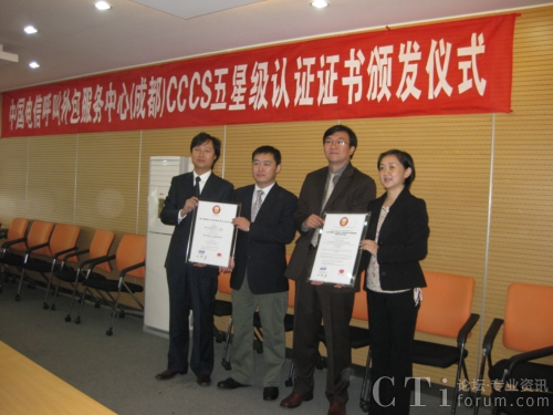 CTI論壇(ctiforum)11月5日消息: 日前,中國電信呼叫外包服務中心(成都)獲頒CCCS五星級客戶聯(lián)絡中心證書,成為國內(nèi)通過CCCS五星級認證的首家外包呼叫中心。