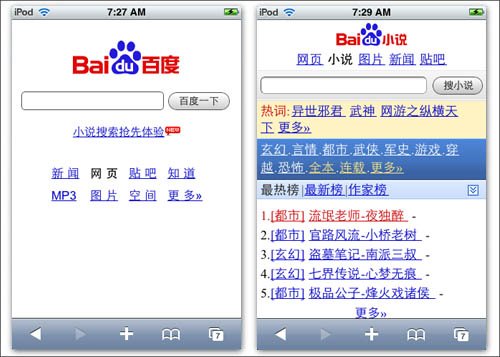 百度推出掌上百度、百度手機(jī)輸入法、百度快搜、百度地圖移動版等產(chǎn)品后,如今又推出了百度Wap小說搜索頻道。以后我們可以直接拿手機(jī)上百度看小說,不用麻煩先在電腦上搜索好并下載復(fù)制過來,這給廣大用戶在線閱讀提供了方便。