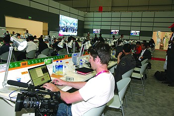 世博的主新聞中心一開門便受到媒體的“熱捧”。中國電信的后臺(tái)信息系統(tǒng)顯示,世博主新聞中心的數(shù)據(jù)量一直居高不下,因?yàn)橛浾哒χ米烂嫔系?00M有線寬帶高速上網(wǎng)、收發(fā)稿件、傳送采訪的視頻。在世博主新聞中心一樓記者工作大廳,想在300個(gè)坐席里找個(gè)空位可不是容易的事情。