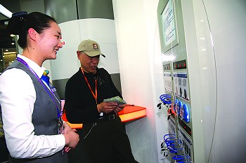 5月1日下午,美國游客安迪的手機(jī)在上海不能使用,找到中國電信世博營業(yè)廳尋求幫助。安迪借用電信營業(yè)員的手機(jī)與失散的親友聯(lián)絡(luò)。