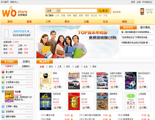 目前聯(lián)通應用商店共有1125款應用,其中包含445款游戲、208款閱讀、294款主題、生活軟件113款、工具軟件49款,娛樂應用16款。目前仍處于測試階段,還沒有應用開發(fā)商進行大規(guī)模的程序提交。