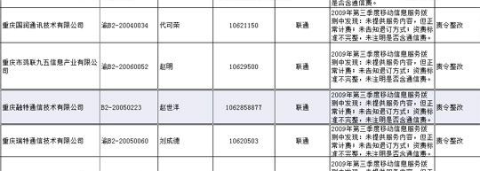 經(jīng)四川省工商行政管理局官方網(wǎng)站查詢發(fā)現(xiàn),成都融特通信技術(shù)有限公司注冊人資本為100萬,法人為趙世洋。注冊信息顯示,成都融特通信技術(shù)有限公司及其關(guān)聯(lián)公司——重慶融特通信技術(shù)有限公司,其主營業(yè)務為通信產(chǎn)品的技術(shù)開發(fā)。而搜狐IT獲得的一份資料表明,成都融特通信技術(shù)有限公司目前仍然是中國聯(lián)通廣東、重慶、四川等省市的增值業(yè)務提供商,并于2009年第三季度因違規(guī),被中國聯(lián)通處罰,要求其進行整改。