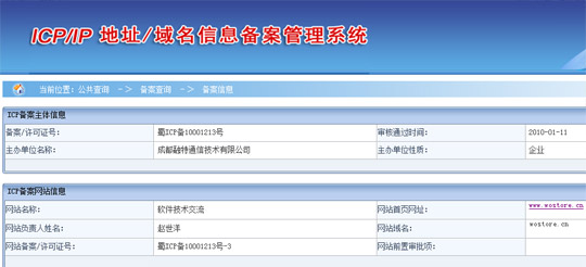 從目前看,WoStore相關(guān)域名可能同樣無法幸免,盡管目前wostore.cn已被用作中國聯(lián)通“WoStore應用商店”官網(wǎng)域名,并在版權(quán)區(qū)標注為“中國聯(lián)通版權(quán)所有”,但目前域名注冊商處信息仍然顯示,wostore.cn所有者為“成都融特通信技術(shù)有限公司”。工信部備案資料顯示, wostore.cn于今年1月11日通過審核備案,目前網(wǎng)站負責人同樣是成都融特通信技術(shù)有限公司。