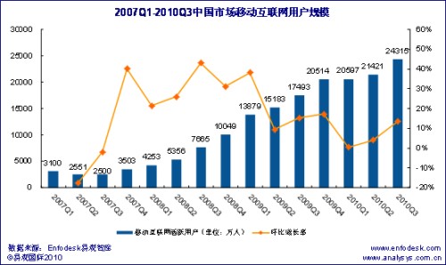 2010年第3季度中國移動(dòng)互聯(lián)網(wǎng)用戶規(guī)模達(dá)2.43億