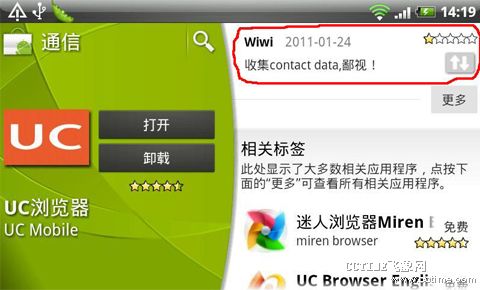 目前,很多手機社交應(yīng)用中加入了對用戶關(guān)系的抓取,這些應(yīng)用在用戶需要尋求社交關(guān)系時,將讀取用戶通訊錄中的信息,并進(jìn)行自動匹配。其中包括手機廠商HTC的HTCSENSE,UCWEB中的UC樂園,以及最近火熱的kik類應(yīng)用,如KikMessenger,米聊、微信等。多數(shù)用戶表示對于此種抓取通訊錄的行為表示疑慮。