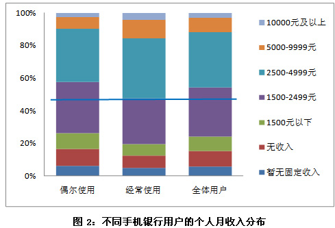 根據(jù)調(diào)查結(jié)果顯示,手機(jī)銀行業(yè)務(wù)在手機(jī)網(wǎng)民中的使用率有顯著提高,2010年7月的調(diào)查結(jié)果為36.8%,2011年2月已經(jīng)升至52.2%。同時(shí),手機(jī)銀行業(yè)務(wù)開始逐漸向中年人群擴(kuò)散,相對(duì)應(yīng)的,目前手機(jī)銀行用戶的個(gè)人月收入均高于去年7月用戶的收入水平。人群結(jié)構(gòu)的優(yōu)化,預(yù)示著手機(jī)銀行業(yè)務(wù)良好的發(fā)展前景。