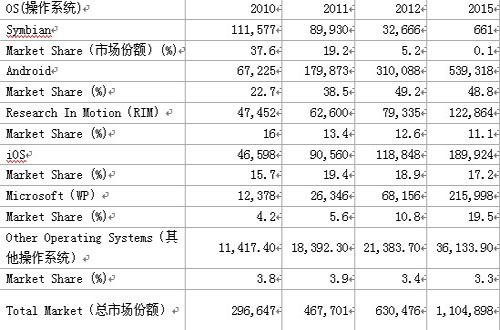 Android操作系統(tǒng)2012年底占智能機50%份額