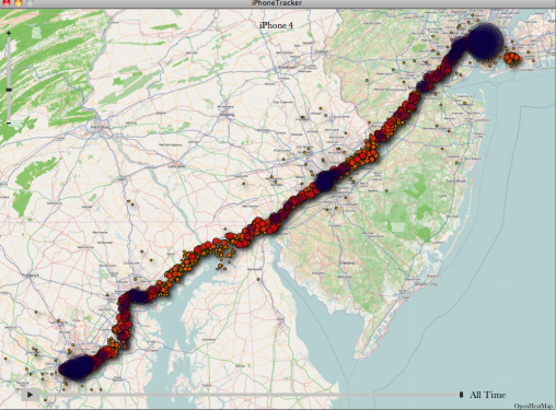 這款名為“iPhone Tracker”的程序,用來(lái)顯示iOS 4設(shè)備收集用戶地理位置的情況艾倫和沃頓稱,這些信息被存儲(chǔ)在consolidated.db 文件中。他們還開(kāi)發(fā)了一款名為“iPhone Tracker”的程序,用來(lái)顯示iOS 4設(shè)備收集用戶地理位置的情況。