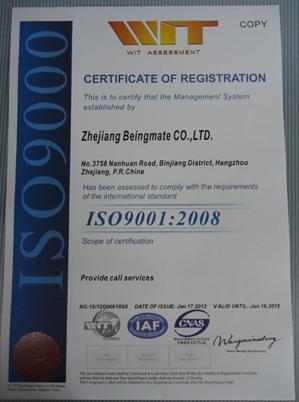 浙江貝因美科工貿(mào)股份有限公司呼叫中心于2012年1月17日通過ISO9001:2008質(zhì)量管理體系認證,并獲得中國CNAS和美國ANAB認可的證書。這標志著,貝因美呼叫中心成為國內(nèi)嬰童業(yè)界少數(shù)通過ISO9001國際質(zhì)量管理體系的審核、并獲得ISO9001:2008質(zhì)量管理體系認證證書的客戶服務中心之一。