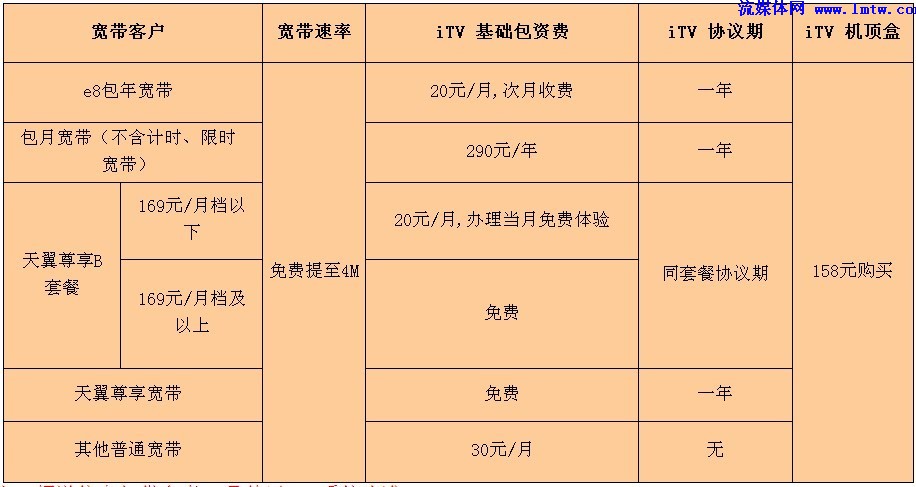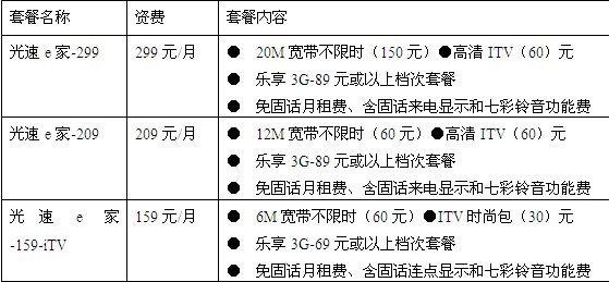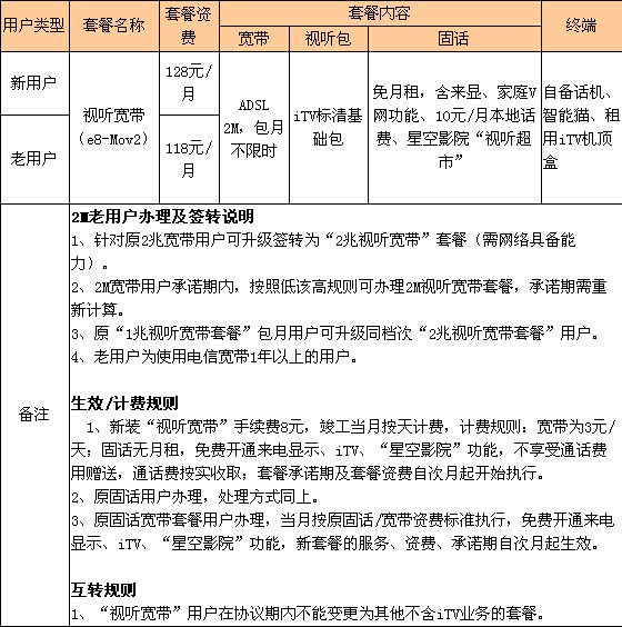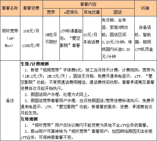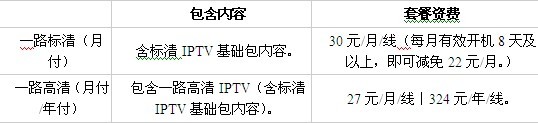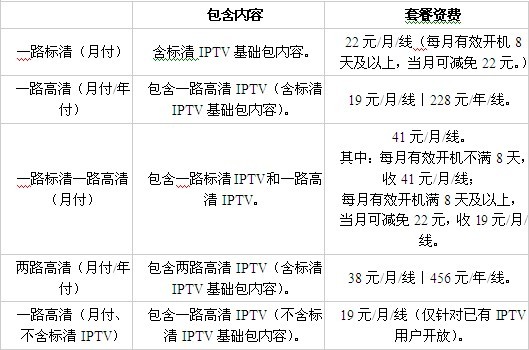 1)上述表內(nèi)費用涉及的資費僅含IPTV使用資費,不含寬帶業(yè)務使用費。