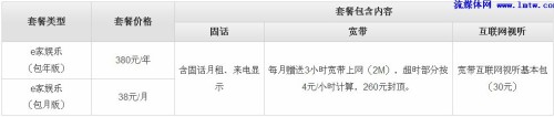 江蘇電信資費除了基本的時尚包和全能包之外,還采取了和現(xiàn)有E家套餐捆綁的方式進行推廣。