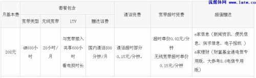 尊享e8套餐適用于對家庭上網(wǎng)時長及速度要求很高,固話使用量較大,有iTV需求的家庭客戶,分為168/月和208元/月兩檔。