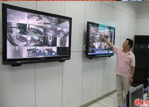 圖:從濟(jì)南火車站“出租車服務(wù)監(jiān)督亭”傳來的實(shí)時(shí)監(jiān)控圖像