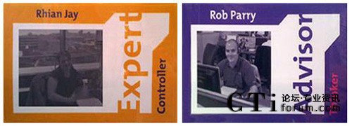 圖:參觀British Gas呼叫中心。注意:紫色襯衫、椅子以及左邊的人格特征徽章