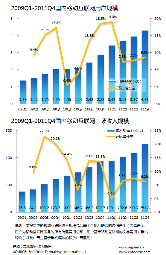 2011年國(guó)內(nèi)移動(dòng)互聯(lián)網(wǎng)用戶規(guī)模突破4億