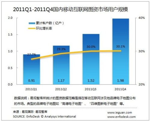 2011Q4國(guó)內(nèi)移動(dòng)互聯(lián)網(wǎng)圖資市場(chǎng)用戶規(guī)模達(dá)1.98億戶