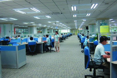 圖:松山湖的10086呼叫中心大型話務坐席區(qū)