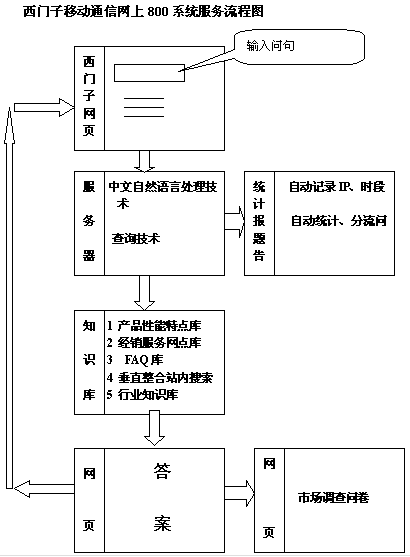 網(wǎng)上800系統(tǒng)的另外一個(gè)特點(diǎn)是自然語(yǔ)句的提問(wèn)方式,客戶可以更準(zhǔn)確、更快捷利用系統(tǒng)找到找到想要的信息;對(duì)于企業(yè)而言,客戶在用這種方式提問(wèn)時(shí),他提的問(wèn)題也是企業(yè)非常重要的,表達(dá)了客戶的需求和想法。提的問(wèn)題越明確,企業(yè)得到的有價(jià)值的信息就越多。在其系統(tǒng)的后臺(tái),客戶提出的各種問(wèn)題都被記錄下來(lái),結(jié)合其它的流量數(shù)據(jù),這些信息被不斷的積累、分析,為其營(yíng)銷(xiāo)決策服務(wù)。而且這種人性化互動(dòng)溝通方式的直接結(jié)果是,瀏覽者首先會(huì)感到自然而不受專業(yè)知識(shí)的約束,他會(huì)更多的去嘗試使用自然語(yǔ)言的方式來(lái)取得服務(wù),增加目標(biāo)客戶對(duì)客戶服務(wù)網(wǎng)站的依賴性。據(jù)悉,該系統(tǒng)僅首月就達(dá)到了十幾萬(wàn)的訪問(wèn)量。