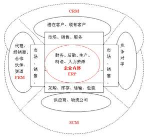 。。理解了什么是供應(yīng)鏈之后,我們可以來著重看一下CRM和供應(yīng)鏈之間的聯(lián)系?蛻絷P(guān)系管理是把客戶,尤其是潛在客戶和現(xiàn)有客戶作為管理的中心,將企業(yè)的運營圍繞著客戶來進(jìn)行,無論是市場,還是銷售,亦或售后服務(wù),只要是和客戶打交道的環(huán)節(jié),都能夠知道客戶的最新信息,得到關(guān)于客戶的完整的統(tǒng)一的交往記錄,F(xiàn)在的客戶關(guān)系管理已經(jīng)將管理的對象延伸出直接客戶的范疇,而是包括了企業(yè)的代理、媒體合作者、供應(yīng)商、員工等等。這樣看來,供應(yīng)鏈與客戶關(guān)系管理并不是簡單的誰包含誰的關(guān)系,而是相互有交集的關(guān)系(如下圖所示)。