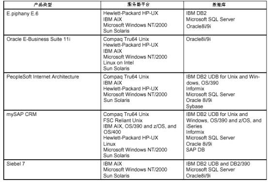 與其他軟件相比,Oracle E-Business Suite 11i在應(yīng)用服務(wù)器上有很大的不同。各種軟件的數(shù)據(jù)庫方面的差異性表現(xiàn)在:軟件訪問和共享外部數(shù)據(jù)的能力存在很大的不同。E.piphany E.6和Siebel 7在訪問外部數(shù)據(jù)的能力方面顯著強于其他軟件。而且企業(yè)可以通過配置不同的選項來確定外部的數(shù)據(jù)源。這是一種比較靈活的方式。