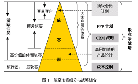 國內(nèi)主要航空公司都進(jìn)一步明確了市場細(xì)分與戰(zhàn)略組合的關(guān)系,凸現(xiàn)“以客戶為中心”的經(jīng)營理念,如圖1所示。