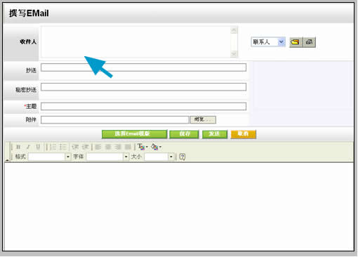 值得推薦的是它的Email字段,因?yàn)橐卓蛢?nèi)嵌了Email服務(wù)器,點(diǎn)擊聯(lián)系人email后直接調(diào)用易客CRM自身的撰寫新郵件界面,較之前面兩種CRM的方式,與郵件系統(tǒng)契合更加緊密。不足之處在于,在彈出的撰寫郵件窗口中收件人部分并沒有自動(dòng)填寫該聯(lián)系人,而是以不可編輯的方式出現(xiàn),推測(cè)可能和試用版有關(guān)。如下圖: