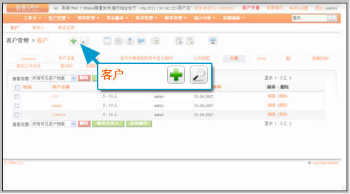 1)在菜單上點(diǎn)擊客戶,進(jìn)入客戶管理的界面