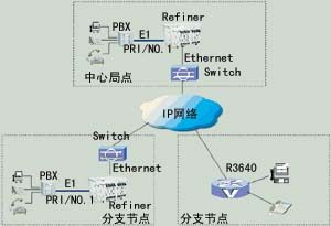 對(duì)于大多數(shù)的企業(yè)用戶,都擁有自己的用戶交換機(jī)PBX。在進(jìn)行IP電話網(wǎng)的建設(shè)中,這些PBX將被保留,繼續(xù)承擔(dān)起用戶接入的功能。而這些PBX之間的中繼連接都將通過(guò)IP骨干網(wǎng)來(lái)完成。這樣,既可以節(jié)約價(jià)格不菲的長(zhǎng)途中繼租用費(fèi),也避免了大規(guī)模的改造所帶來(lái)的浪費(fèi)。