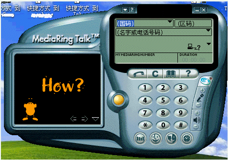 1.撥打電話:選擇所撥打電話的類型為"PC to Phone";選擇國家代碼(中國填寫86),從下拉列表中直接選擇即可;輸入城市區(qū)號(hào),通過鍵盤輸入或在"電話機(jī)"中按鍵均可;鍵入用戶號(hào)碼;點(diǎn)擊呼叫按鈕,這時(shí)彈出一個(gè)對(duì)話框,請(qǐng)您輸入Value Fone帳號(hào)和密碼,正確輸入后,MediaRing 會(huì)通過服務(wù)器查找對(duì)方是否也已登錄在服務(wù)器上,如果是,對(duì)方的 MediaRing 就會(huì)自動(dòng)響鈴,若對(duì)方接聽,雙方就可以通過 MediaRing 進(jìn)行通話。如果與對(duì)方?jīng)]有聯(lián)絡(luò)成功,可能是對(duì)方并不在線,此時(shí)MediaRing會(huì)詢問是否要斷開并聯(lián)絡(luò)對(duì)方,選擇“是”,接下來軟件會(huì)斷線并通過調(diào)制解調(diào)器直接向?qū)Ψ綋芴?hào)(相當(dāng)于通過你的電話直接撥打?qū)Ψ教?hào)碼),對(duì)方聽到一串特殊的響鈴(兩到三聲鈴聲)后便會(huì)明白有人在網(wǎng)絡(luò)上想找他了。對(duì)方應(yīng)立即聯(lián)上Internet并使用MediaRing接聽電話。