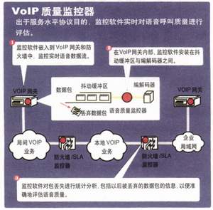IP語音呼叫質(zhì)量無法用常規(guī)方式監(jiān)控。傳統(tǒng)的網(wǎng)絡(luò)監(jiān)控器的關(guān)注點(diǎn)是孤立的傳輸流統(tǒng)計(jì)數(shù)據(jù),而非固有的質(zhì)量、語音清晰度或最終用戶的感覺。這類傳統(tǒng)的工具提供有關(guān)鏈路吞吐量和利用率、抖動(dòng)、延時(shí)、錯(cuò)誤、包丟失總數(shù)或丟包率的孤立的數(shù)據(jù)。然而,這些統(tǒng)計(jì)數(shù)據(jù)沒有揭示呼叫質(zhì)量,因?yàn)樗鼈兒鲆暳蒜Оl(fā)丟失,不理會(huì)抖動(dòng)緩沖區(qū)造成的包丟棄,沒有考慮網(wǎng)絡(luò)故障對(duì)用戶感覺造成的影響。