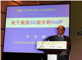 國務(wù)院發(fā)展研究中心局長鄧壽鵬的發(fā)言“處于我國3G前夕的VoIP”正式拉開了本次大會(huì)的序幕。鄧壽鵬局長的發(fā)言詳細(xì)闡述了3G和VoIP在中國的發(fā)展現(xiàn)狀,客觀分析了這兩個(gè)新技術(shù)存在的不足以及未來將帶來的巨大生產(chǎn)力進(jìn)步和其中潛在的巨大商機(jī), 對運(yùn)營商傳統(tǒng)通信方式的沖擊以及對其轉(zhuǎn)型為全業(yè)務(wù)服務(wù)提供商的推動(dòng)力。
