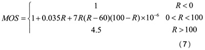 平均主觀值MOS是1-5之間的數(shù),1是語音質(zhì)量最差的,5是語音質(zhì)量最好的。R值可以通過下面的公式轉(zhuǎn)化成MOS分: