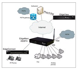 衡量VoIP質量好壞的參數(shù)有MOS值, 延遲, 抖動以及丟包等參數(shù), 目前市場上能夠測量這些參數(shù)的系統(tǒng)并不多; 為了幫助用戶更好地了解其VoIP業(yè)務的好壞, 積極采取措施改善VoIP質量, 位于美國加州Santa Clara的Edgewater網絡公司推出了可以測量VoIP MOS值的EdgeMarc系列語音網關, 該系列語音網關與VoIP網絡管理系統(tǒng)EdgeView一起, 可以組成了一個功能完善可以監(jiān)控每個VoIP呼叫MOS值的VoIP運營管理平臺. EdgeMarc4500非常適合中小企業(yè)使用, 用戶既可以通過AP無線上網, 又可以通過Voice Gateway利用傳統(tǒng)模擬電話打IP電話,
