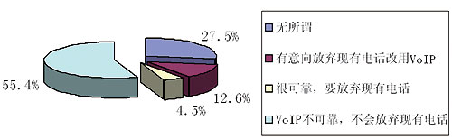 最近《華爾街日?qǐng)?bào)》刊載了YankeeGroup公司的調(diào)查報(bào)告,對(duì)美國(guó)人使用VoIP的趨向和目前的一些應(yīng)用狀況進(jìn)行了統(tǒng)計(jì),重點(diǎn)調(diào)查了美國(guó)人是否要放棄傳統(tǒng)的固定電話而改用VoIP,具體數(shù)據(jù)參見(jiàn)圖1。從圖中可見(jiàn)人們對(duì)放棄固定電話而改用VoIP的意向還不是很高,但已使用VoIP的人群卻是個(gè)龐大的群體,使用VoIP的人口比例已達(dá)15.1%,現(xiàn)使用人數(shù)已達(dá)到了4500多萬(wàn)戶,具體見(jiàn)表1。另外,目前美國(guó)VoIP已從暴利行業(yè)轉(zhuǎn)向微利行業(yè),這點(diǎn)可以從Skype公司收入得到證明,詳見(jiàn)表2。