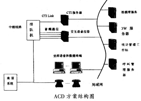 ____提供ACD方案的廠商傳統(tǒng)上是生產(chǎn)程控交換機的廠商。80年代以來,交換機廠家采取 了以下發(fā)展策略:在增強路由能力的基礎上開放交換機的控制接口,以標準的軟、硬件格 式提供CTI-Link,集成成熟的語音產(chǎn)品作為語音服務平臺。因此,ACD方案走的是一條基于 CTI-Link標準、專業(yè)通信和計算機廠家利用各自優(yōu)勢分工合作的路。