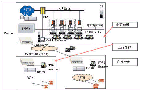 分布式呼叫中心一般由總中心和分中心組成,它們之間可以是對(duì)等關(guān)系或隸屬關(guān)系,各中心分布于不同的地理位置,在運(yùn)作時(shí)間、資源、功能上互相協(xié)作,為用戶(hù)提供最大限度的服務(wù)。分布式呼叫中心在功能上的突出需求為:用戶(hù)打入的電話(huà)可以在各分呼叫中心之間轉(zhuǎn)接,即實(shí)現(xiàn)網(wǎng)絡(luò)ACD;不論用戶(hù)資料存放于何地理位置的數(shù)據(jù)庫(kù),它都應(yīng)能在電話(huà)被派到話(huà)務(wù)員座席時(shí),在來(lái)電信息中彈出,即實(shí)現(xiàn)遠(yuǎn)程數(shù)據(jù)訪問(wèn);具有響應(yīng)IP電話(huà)的能力,以處理通過(guò)IP網(wǎng)絡(luò)傳送過(guò)來(lái)的異地用戶(hù)呼叫或Web呼叫;呼叫排隊(duì)模塊應(yīng)具有較強(qiáng)的路由能力,以使異地用戶(hù)能直接被最適合的話(huà)務(wù)員接聽(tīng)。