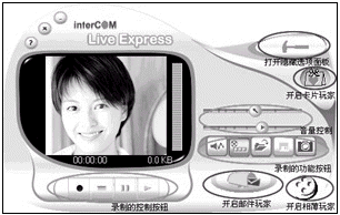 動(dòng)態(tài)視頻EMAIL,用這個(gè)軟件可以采用發(fā)送電子郵件的方式,將您的音容笑貌傳送到親朋好友的郵箱中,讓遠(yuǎn)方的她收到可“動(dòng)”的你。我們還是以?shī)W美嘉公司的CD370電腦相機(jī)為例向大家介紹這個(gè)功能。在CD370附帶的驅(qū)動(dòng)光盤中就搭載了視頻EMAIL的制作軟件,其實(shí)它是Intercom的Live Express視頻應(yīng)用軟件,除了視頻EMAIL(郵件玩家)的功能外,它還具有“卡片玩家”及“相薄玩家”等功能,我們將在以后的文章中為大家逐一介紹。首先,打開(kāi)Live Express的主程序“影音玩家”,可以見(jiàn)到程序界面上分布著大大小小不同的按鈕,是不是一時(shí)間找不到感覺(jué)了?不用著急,下面請(qǐng)跟著我的步驟來(lái)操作: