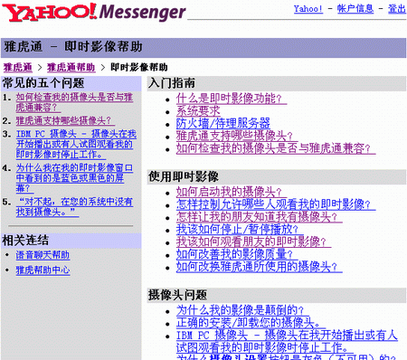 選擇工具->開啟我的攝像頭后,就會(huì)彈出“我的即時(shí)影像”窗口(圖4),如果你的攝像頭安裝連接正常,可以馬上從這個(gè)窗口中看到你的影像;如果你的攝像頭正常,但在窗口中卻沒有看到影像,你可以在聯(lián)網(wǎng)的情況下選擇當(dāng)前窗口中的幫助->即時(shí)影像幫助進(jìn)入相關(guān)網(wǎng)頁(圖5)對你的攝像頭進(jìn)行雅虎通的兼容性測試,或者尋求更為詳細(xì)的幫助。