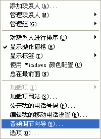 同樣,首先你應(yīng)該在MSN Messenger中調(diào)節(jié)你的音頻和視頻設(shè)備。選擇工具->音頻調(diào)節(jié)向?qū)?圖8)就會(huì)彈出“音頻和視頻調(diào)諧向?qū)А钡拇翱?圖9),請根據(jù)這個(gè)向?qū)У奶崾,一步一步進(jìn)行測試和調(diào)節(jié)。