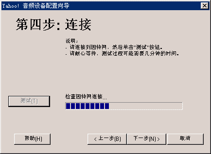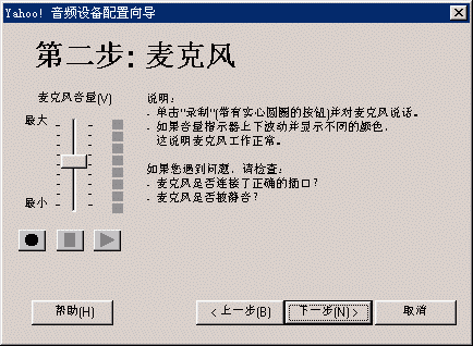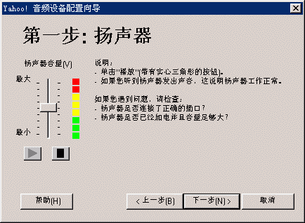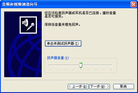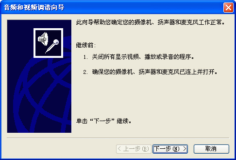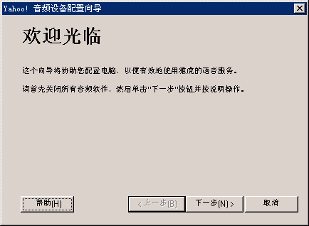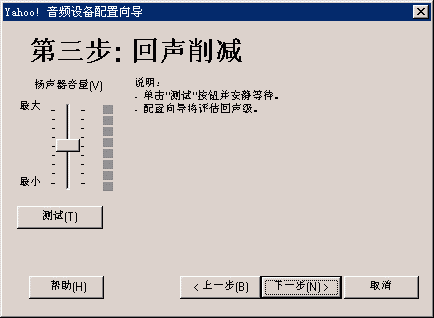 選擇幫助->音頻設(shè)備配置向?qū)?圖2),會(huì)彈出“音頻設(shè)備配置向?qū)А贝翱?圖3),這個(gè)向?qū)?huì)幫助你對揚(yáng)聲器、麥克風(fēng)、回音、網(wǎng)絡(luò)連接等項(xiàng)目進(jìn)行標(biāo)準(zhǔn)的測試和設(shè)置。