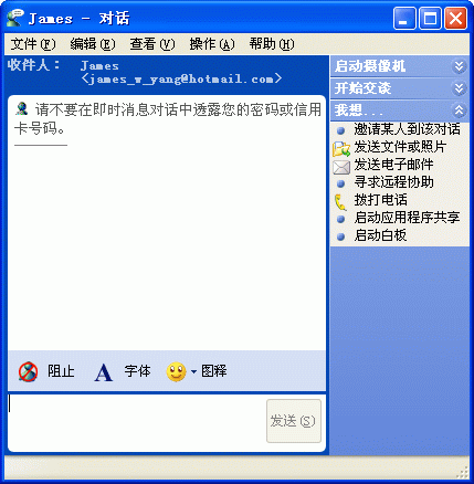 在對你的音、視頻設(shè)備檢查無誤、調(diào)試完畢后,恭喜你!你可以馬上給你的朋友打可視電話了。點(diǎn)擊在線好友的Yahoo! ID,就會(huì)彈出一個(gè)訊息發(fā)送框(圖6),在菜單欄下面的幾個(gè)按鈕中有“視頻”和“語音”兩個(gè)按鈕。沒錯(cuò)!就是它們了,點(diǎn)吧!點(diǎn)擊“視頻”按鈕后彈出了剛才的“我的即時(shí)影像”窗口;點(diǎn)擊“語音”按鈕后,訊息發(fā)送框中間部分會(huì)多出一條語音顯示和控制的狀態(tài)欄。(見圖7)對方只需右鍵單擊朋友列表中你的Yahoo! ID,并選擇“觀看即時(shí)影像”即可看到你的影像并同時(shí)聽到你的聲音。OK,開始你們愉快的交流吧!:)