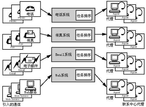 為了提高工作效率,當(dāng)前的跨媒體聯(lián)系中心必須提供新的功能和特點。例如需要新的隊列結(jié)構(gòu),具有處理和分配一個邏輯通路上不同通信媒體請求的能力。所有的入站查詢均由新的負載隊列系統(tǒng)處理。