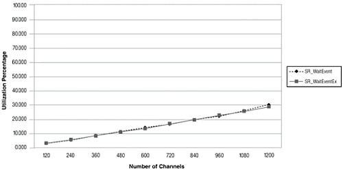 這部分提供了使用正確的線程和通道數(shù)組合的測(cè)試結(jié)果, 使用的是擴(kuò)展異步編程模式sr_waitEvtEx().