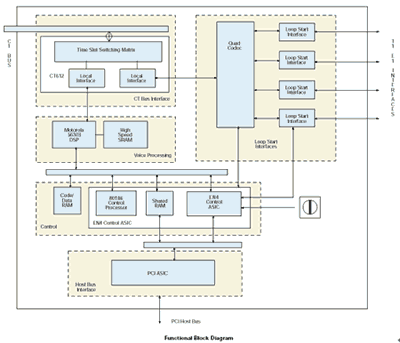 信令數(shù)據(jù)(摘機(jī)/掛機(jī)、振鈴、呼叫方ID等等)傳送到板內(nèi)控制處理器,并且通過雙端口共享RAM和主機(jī)PCI總線發(fā)送到應(yīng)用程序。